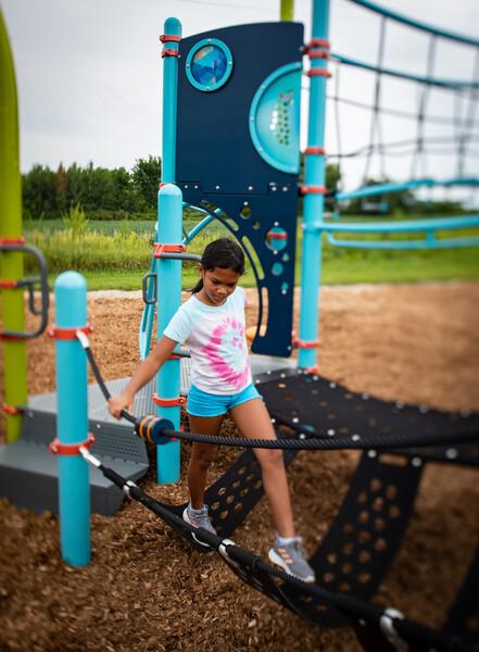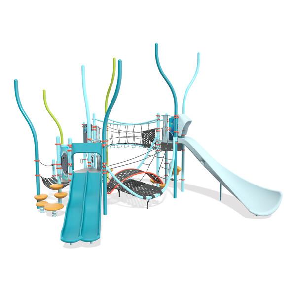 Grab your best beach buddy and ride the wild surf on this wondrously wavy playstructure. Kids will love creating seaworthy adventures as they sail across the Tidal Wave Climber, wind their way down curvy slides and hop-hop-hop over the Pod Climber®.