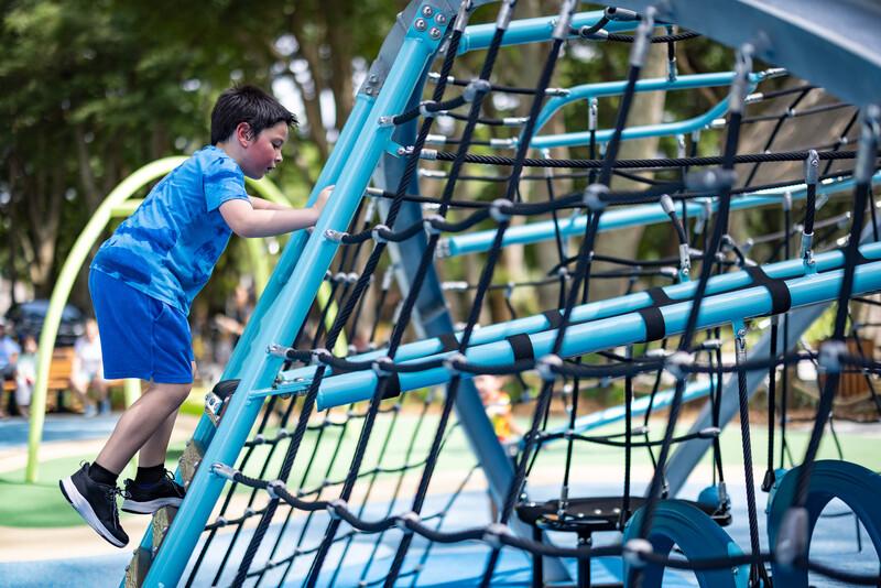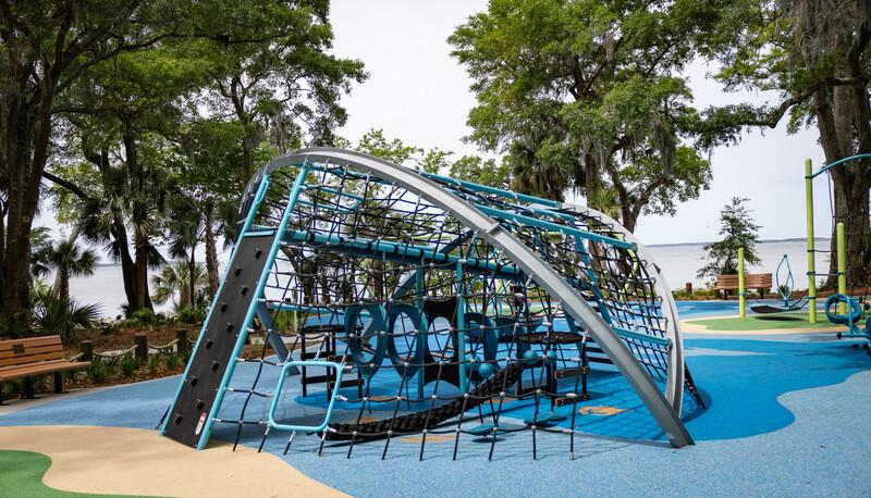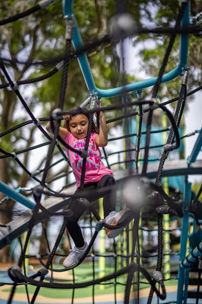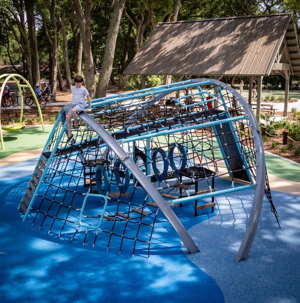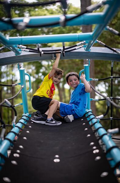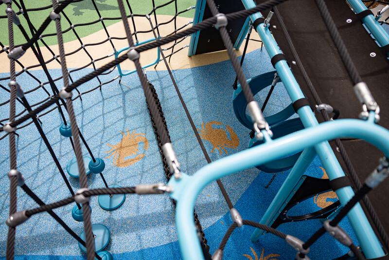 The Crab Trap® HDG provides lots of climbing area for as many as 65 kids. Whether climbing cables, pods, rings, or ladders, the variety will keep kids coming back for more. The Hot Dip Galvanized (HDG) steel I-beams provide an extra layer of corrosion protection in harsh coastal environments and provide a cool, modern aesthetic.