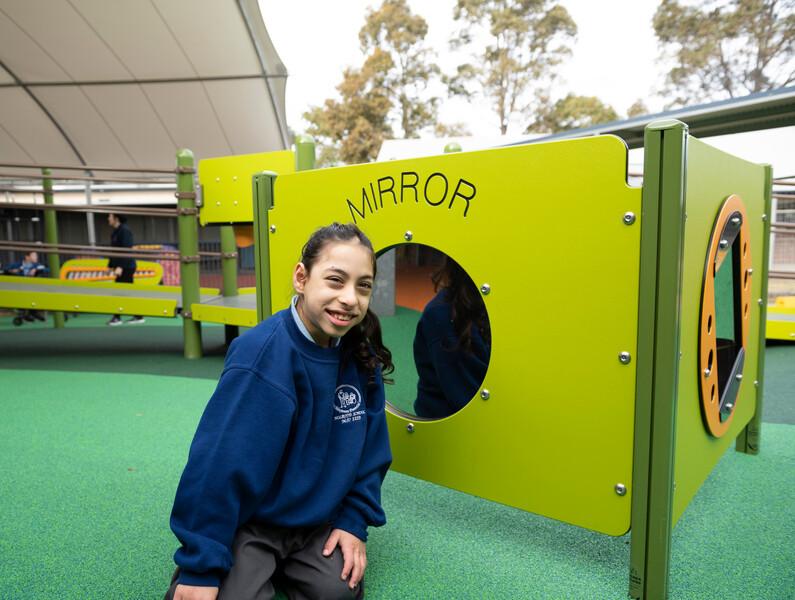 The Learning Wall Mirror Panel allows kids to see themselves having a great time! A unique component of any playground or playstructure.