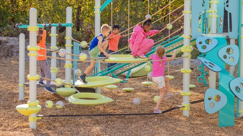 The PlayBooster® O-Zone® Array Climber takes the challenge of the O-Zone to a whole new dimension! This expanded configuration transforms unique, suspended polyethylene rings into an exciting climbing adventure course that challenges kids mentally and physically as they navigate multiple pathways through, over, and around. Whether they're weaving through the center, scrambling over the top, or creating their own route, the O-Zone Array Climber offers endless opportunities for active, creative play.Features