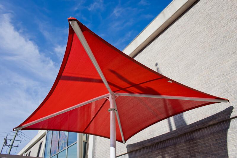 Designed with a single central post, Single Post Pyramid Shades provide relief from the sun in small areas with limited post space.