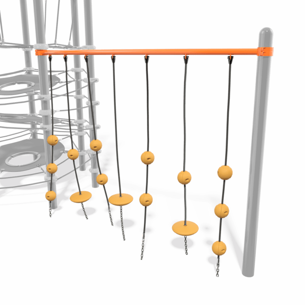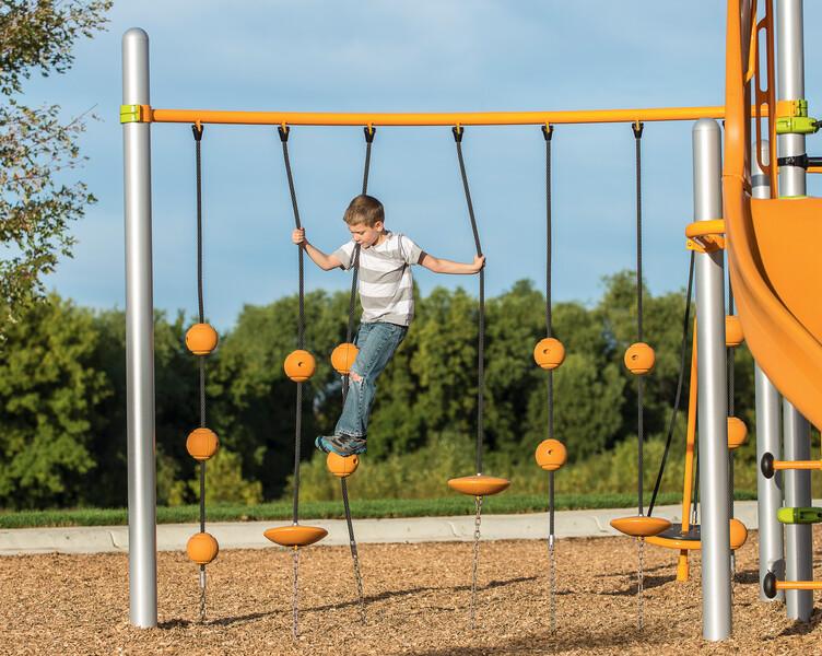 Multiple suspended ball knots and discs make it interesting for kids to climb up, step over, and stretch across the SwiggleKnots™ Bridge. There’s no right way, so kids’ imaginations can soar.Features