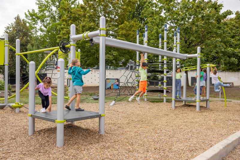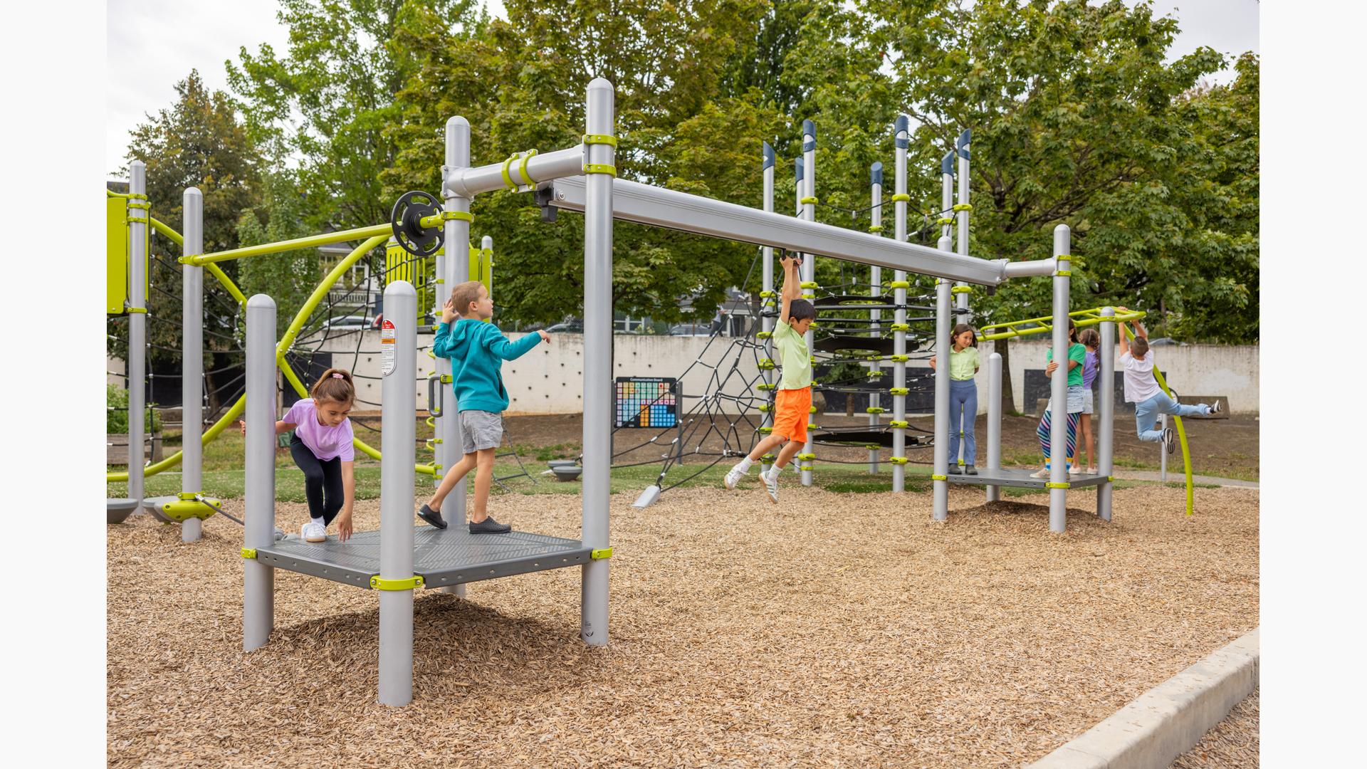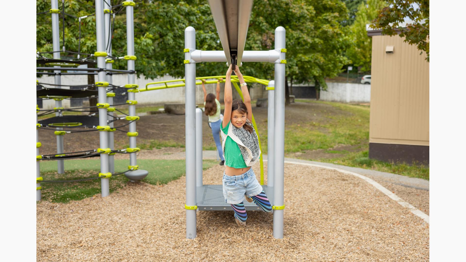 Zoom across the playground with a playground classic, the PlayBooster® Track Ride. This fun activity provides a challenge for older kids as well as build upper-body strength.Features