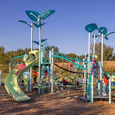Evos® and Weevos® are unconventional arched systems that encourage unscripted play. The geometric patterns of Hedra® will turn heads and attract kids from far and wide. Finally, PlaySense® ensures that every community and every budget can call a new playground design their own.