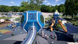 3-2-1… blast off! This space-themed playground delivers an out-of-this-world experience for kids of all ages and abilities. A rocket-themed playground tower allows kids to travel to the moon and back and see UFOs while they navigate the slides, climbers and sensory tunnel of the sprawling, ramped inclusive playground structure. The Crab Trap® offers endless playground net climbers, and encourages even more imaginative play. Playground net climbers take kids up to a custom Hedra® Tower, while a thrilling stainless steel tunnel slide sends them back to earth. Freestanding play components like the We-Go-Round®, We-saw™ and swings round out the offering for older kids of all abilities. For toddlers and preschoolers, the Hedra Scout delivers age-appropriate challenge with its climbers, slides and activity panels. A Cozy Dome®, OmniSpin® Spinner and playground swings are also included in this area for kids ages 2 to 5.