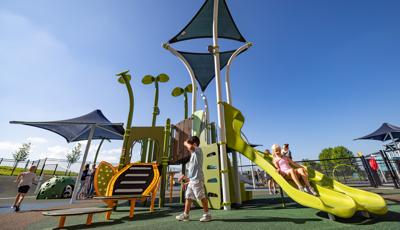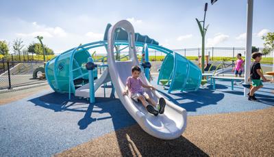 Cottonwood Park accommodate kids ages 2 to 5 and 5 to 12 featuring the ZipKrooz®, spinners and a PlayBooster® play structure with net climbers, slides and GeoPlex® climbing panels. The second playground 5 to 12-year-olds includes Netplex® play structure, a We-Saw™ and Oodle® Swing. The play area for toddlers and preschoolers features the Weevos® play system with age-appropriate challenges.