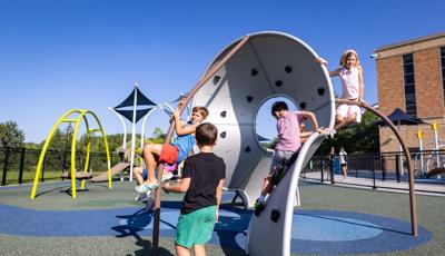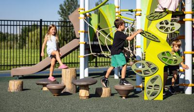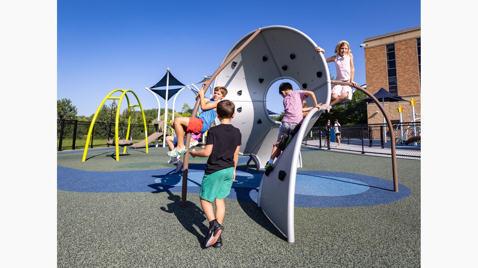 The Creation of the World Playground at Grace Church in Eden Prairie, Minn. turns timeless teachings into an immersive, all-ages play journey. Inspired by the Book of Genesis, the playground unfolds through five thoughtfully designed zones for infants through elementary-aged children, each inviting exploration through nature-themed forms and storytelling play. Smart Play® structures—including TreeTops® for ages 5–12, Sprig® for ages 2–5, and Nook® for toddlers—anchor the experience, while carefully selected freestanding elements like a custom fish climber and Permalene® animal forms bring the story to life.